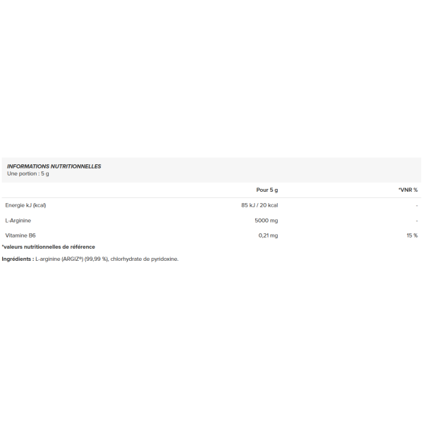 L’arginine est un acide aminé essentiel pour optimiser vos performances sportives. Le 100% Arginine Zero offre une pureté maximale sans additifs superflus. En favorisant la circulation sanguine, il contribue à une meilleure nutrition musculaire, ce qui est crucial pour la croissance et la récupération. Utiliser 100% Arginine Zero, c’est choisir un produit efficace pour augmenter votre endurance et vos performances lors des entraînements. Transformez votre routine et atteignez vos objectifs avec cet excellent supplément.