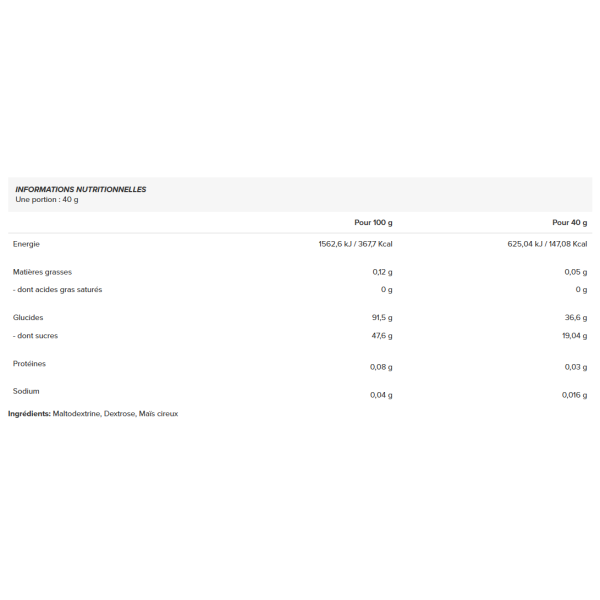 50% de dextrose, 20% de Waxy Maize et 30% de maltodextrine