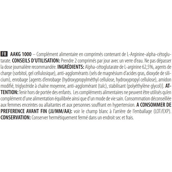 L-Arginine alpha-cétoglutarate 1000 mg 2000 mg