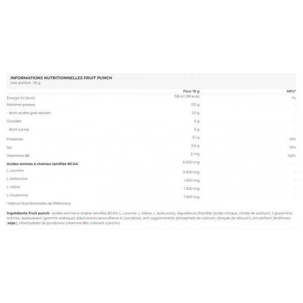 L-leucine (en g) : L-isoleucine (en g) : L-valine (en g) : Arginine (en g): Glutamine (en g) :