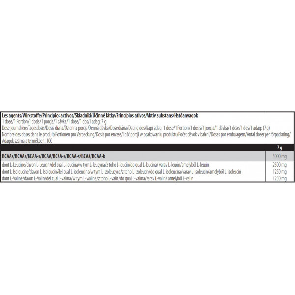 L-leucine (en g) : L-isoleucine (en g) : L-valine (en g) : Arginine (en g): Glutamine (en g) :