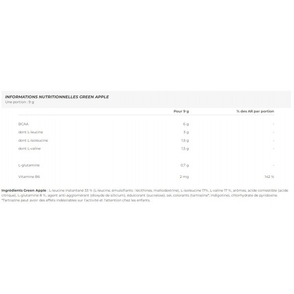 L-leucine (en g) : L-isoleucine (en g) : L-valine (en g) : Arginine (en g): Glutamine (en g) :