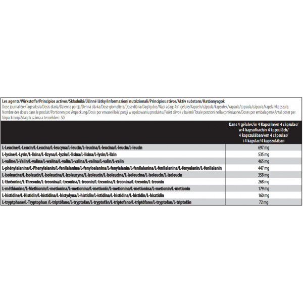 L-leucine (en g) : L-isoleucine (en g) : L-valine (en g) : Arginine (en g): Glutamine (en g) :