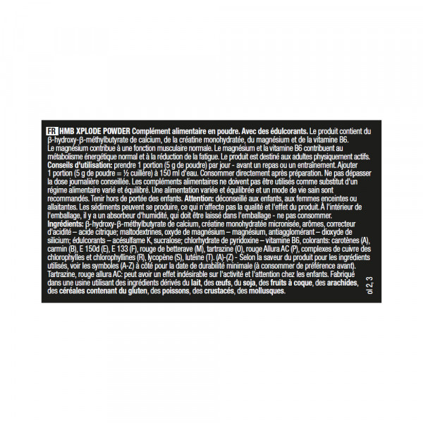 HMB Xplode Powder est un complément essentiel pour les athlètes cherchant à optimiser leur performance musculaire. Ce produit favorise la prise de masse maigre tout en aidant à la récupération après l’entraînement. Enrichi en acides aminés, il soutient la croissance musculaire et réduit les effets du catabolisme. Sa formule avancée permet une absorption rapide, garantissant des résultats visibles. Pour atteindre vos objectifs de musculation et améliorer votre endurance, intégrer HMB Xplode Powder à votre routine d’entraînement est un choix judicieux.