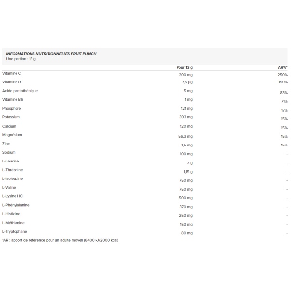 Platinium Eaa+ optimise la récupération musculaire grâce à ses acides aminés essentiels. Il favorise la croissance musculaire et réduit la fatigue après l’entraînement. Sa formulation rapide assure une absorption efficace pour améliorer performances et atteindre vos objectifs fitness.